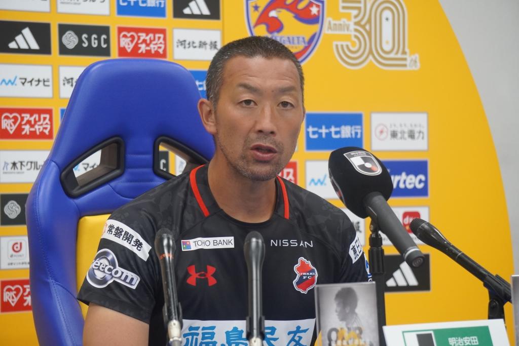 いわきの田村雄三監督は「球際のところは松井選手のストロングだと思います。そこで主導権を握れないから(山下を)交代した」と明かした。