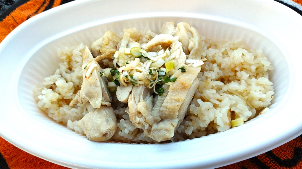 鶏のダシが効いた炊き込みご飯と蒸し鶏をナンプラーで炒めたネギが上手くまとめていますヽ(・∀・)丿