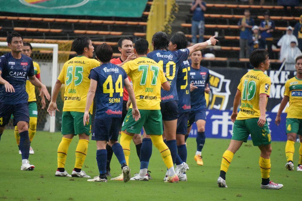 このプレーは笛こそ鳴ったものの、カードが出されなかったため千葉イレブンは猛抗議。一時は両チームによる取っ組み合いにまで発展し、ATは予定の3分を超過。最終的に試合は99分台に終了した。