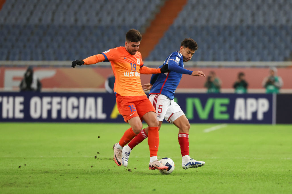 昨シーズンのACLではグループステージと準々決勝で計4回戦い、F・マリノスが全勝した両チームの対戦。先に試合を動かしたのはホームの山東泰山。前半43分にこぼれ球を拾ったゼカの落としをクリサンが沈め先制に成功する。