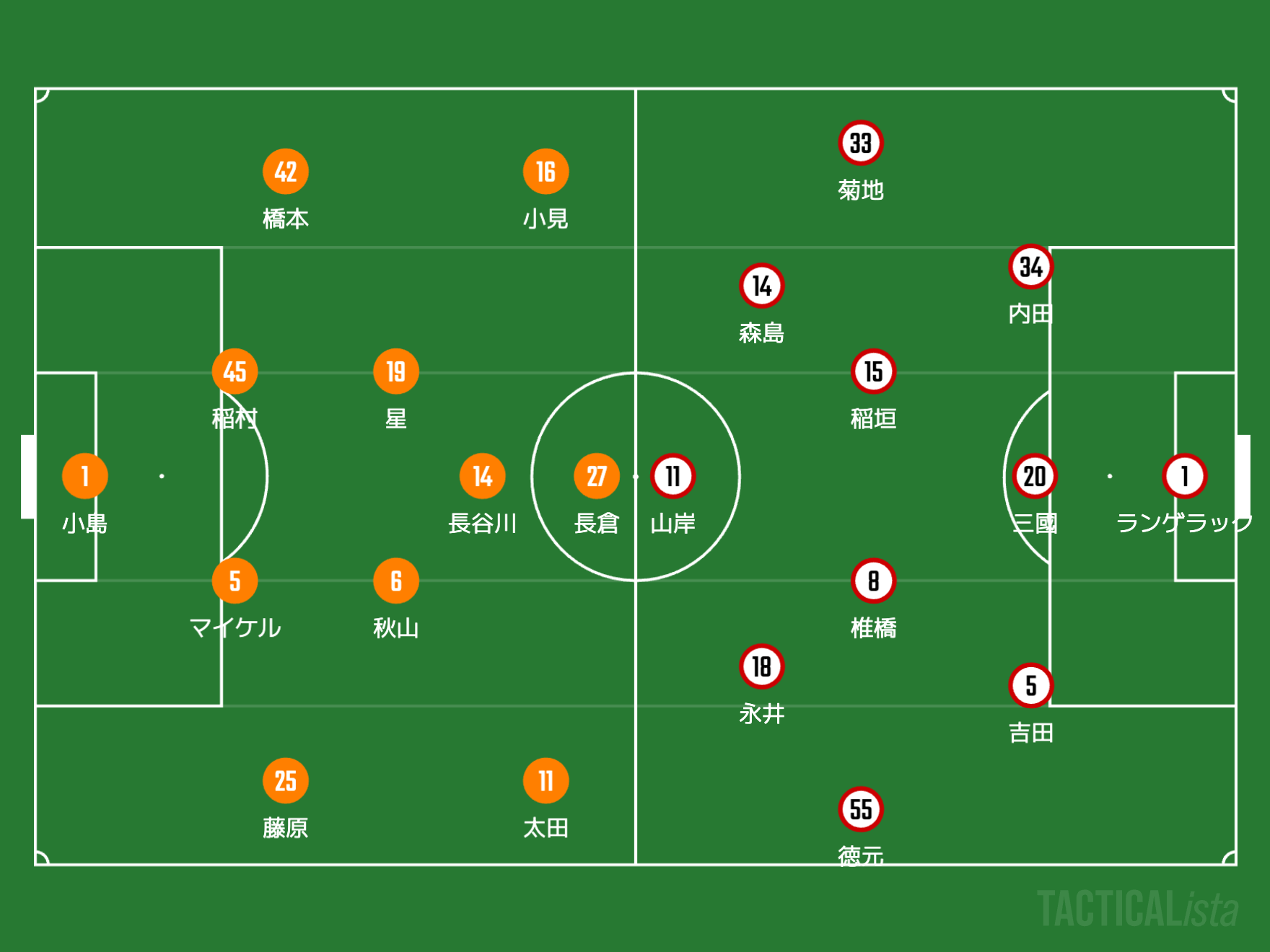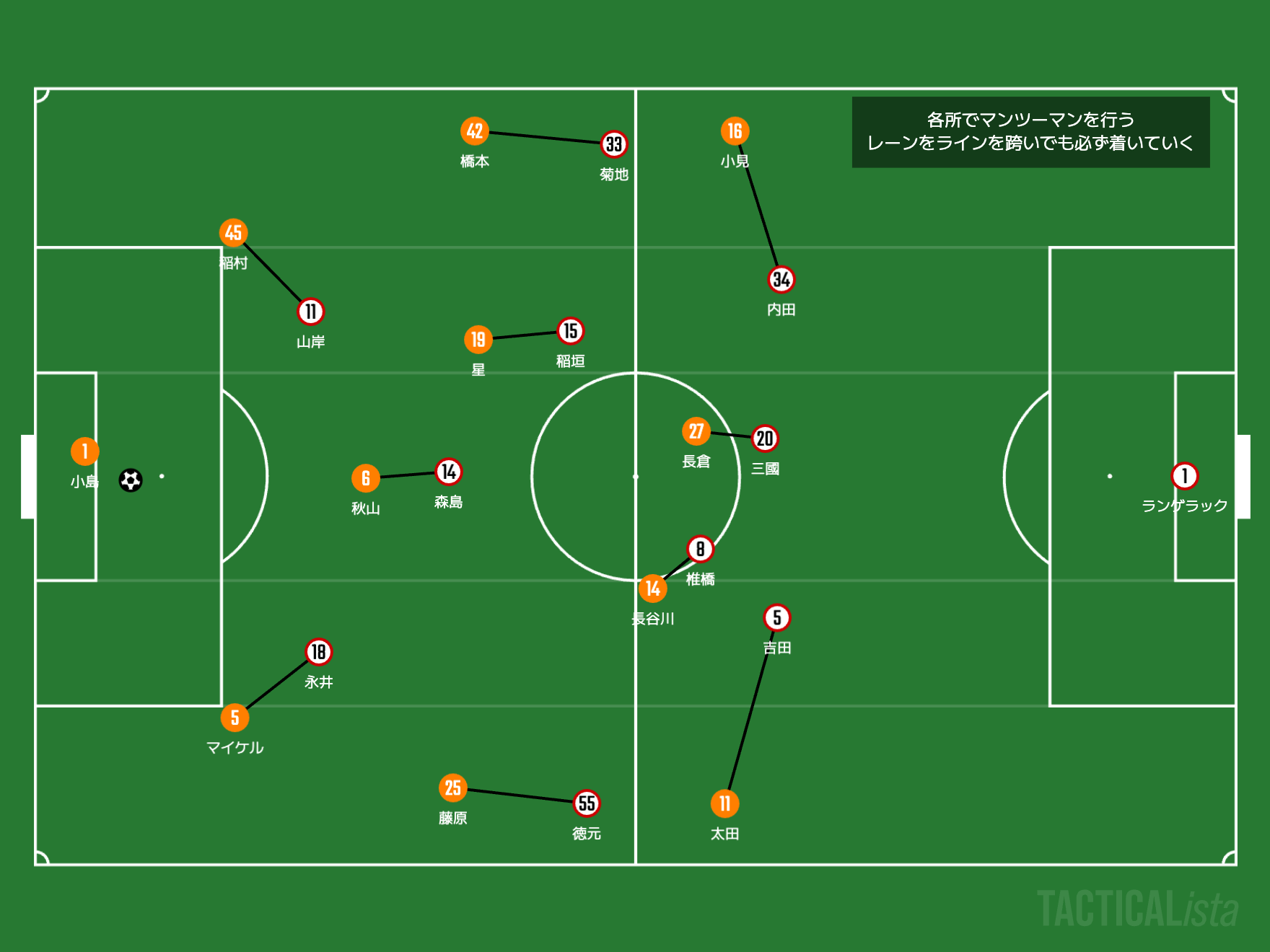 この試合のグランパスのマンツーマンの担当はこのようになると思います。