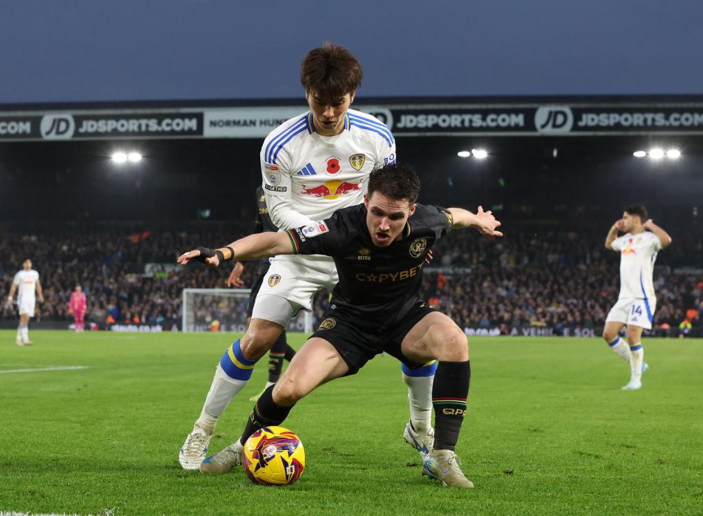 英2部リーズの田中碧は、9日の第15節QPR戦にフル出場して2-0の勝利に貢献。