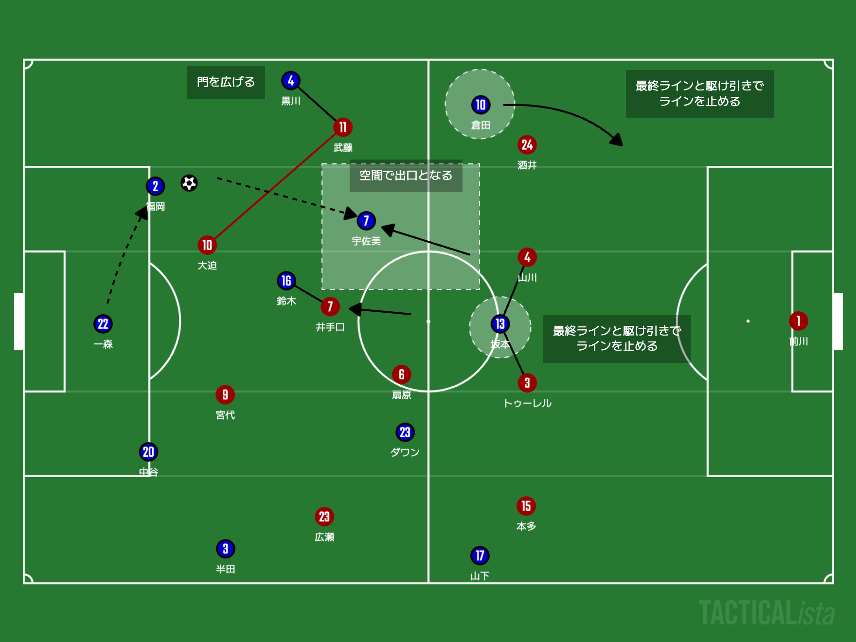そしてここで必要になるのが宇佐美貴史や坂本一彩のさらに奥の出口の作り方と幅と深さの担保です。以下の図をご覧ください。