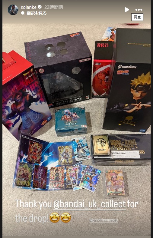 『バンダイUK、発売ありがとう!』というコメントともに大量の日本アニメグッズが!ドラゴンボールやナルト、ワンピースのグッズを爆買いしたようだ。