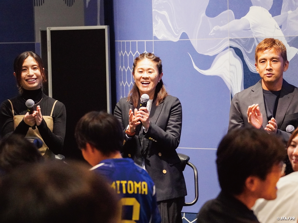 1回目となる今回は、スペシャル講師として元なでしこジャパンの澤穂希さん、鮫島彩さん、さらには元サッカー日本代表の稲本潤一(南葛SC)が招かれ、海外プレー経験が豊富なサッカー選手ならではのトークを展開した。
