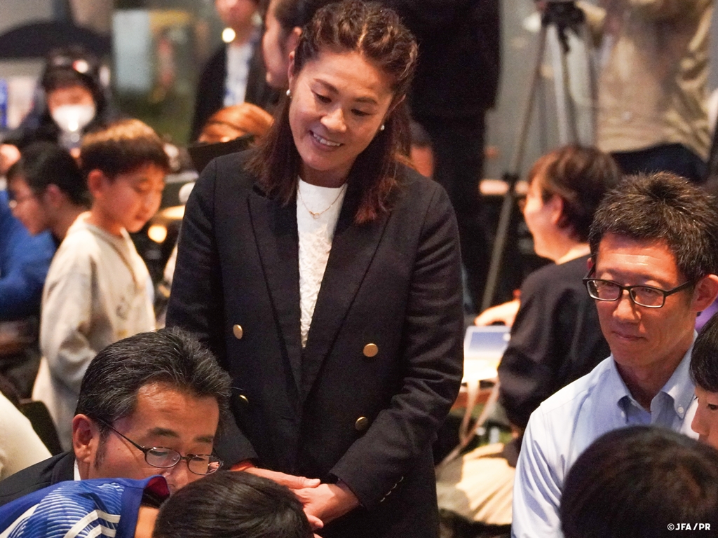 長きにわたりなでしこジャパンの中心選手としてチームをまとめてきた澤さん。オフ・ザ・ピッチで心掛けていたことを尋ねられると、「とにかく一人一人と向き合ってコミュニケーションをとり、自分の言いたいことをしっかり伝え、相手の意見もしっかり聞くようにしていました。多様な個性を活かしていけるように、その選手の特徴をしっかり出せるように、普段からコミュニケーションを心がけていました」と話していた。