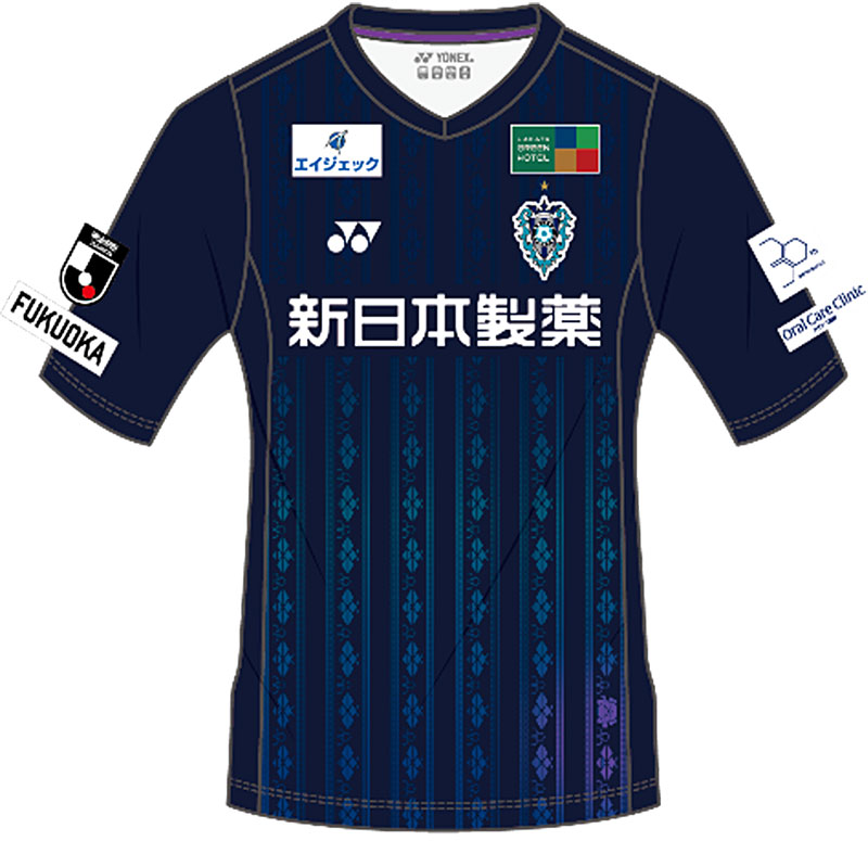 今作も引き続き、地元福岡を代表する伝統工芸「博多織」をモチーフに採用。博多織模様で構成するストライプの中にクラブの象徴である「蜂」のアイコンをビッシリと組み込み、アビスパらしさを強調した蜂軍団デザインに仕上げている。