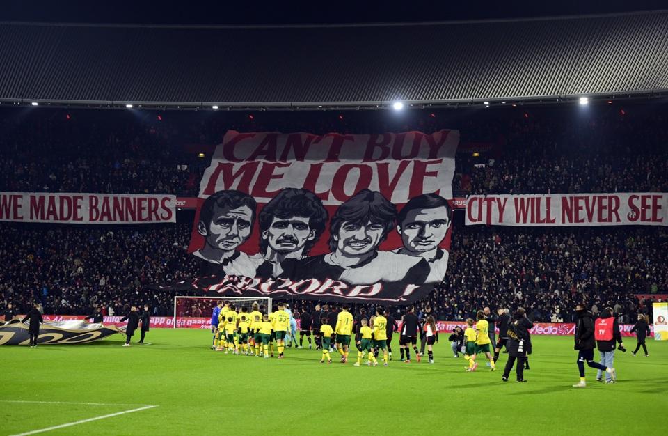 『1908.nl』によれば、シティのエティハド・スタジアムで掲げるはずだったこの巨大バナーは、UEFAから承認を得ていたにもかかわらず、シティ側が拒否したためにマンチェスターでは披露することができなかったとか。