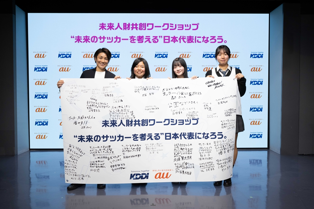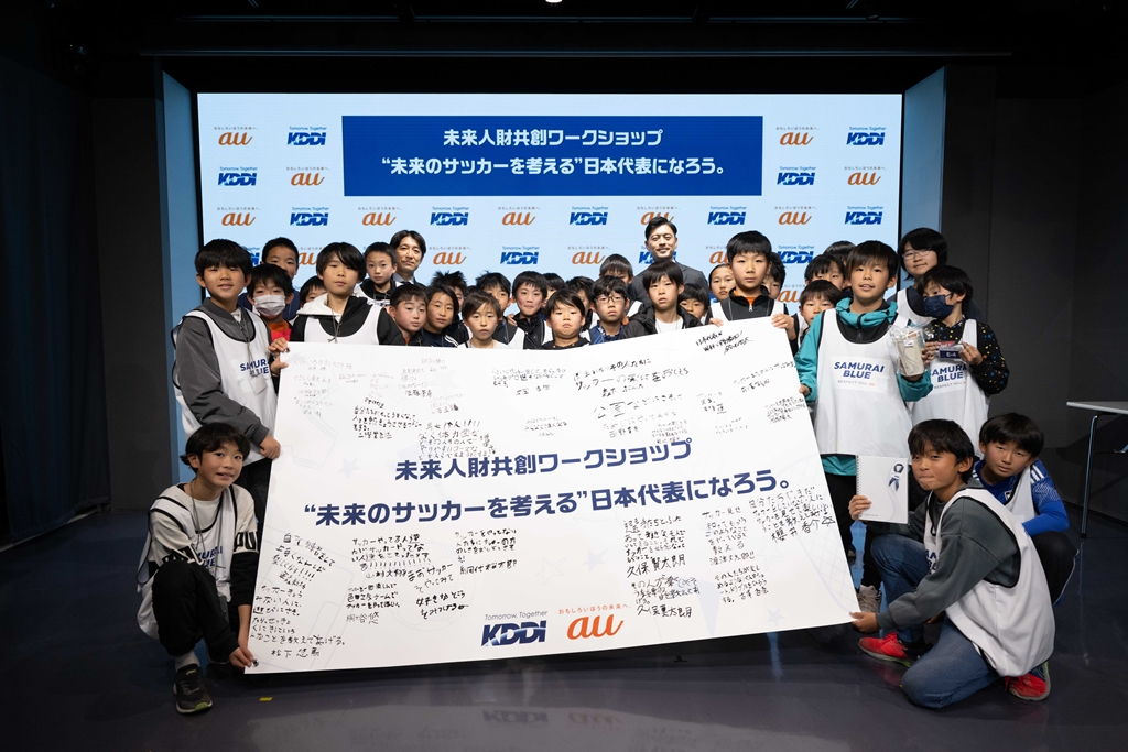 KDDIは26日、メジャーパートナー契約を結ぶ公益財団法人日本サッカー協会(JFA)協力のもと、「サッカー」を通じて、誰もが思いを実現できる社会をつくることを目的とした『未来人財共創ワークショップ“未来のサッカーを考える日本代表”になろう。』をKDDIのコンセプトショップ「GINZA 456 Created by KDDI」にて開催した。
