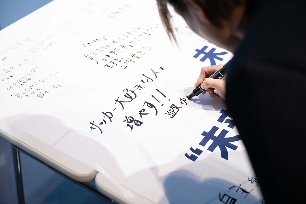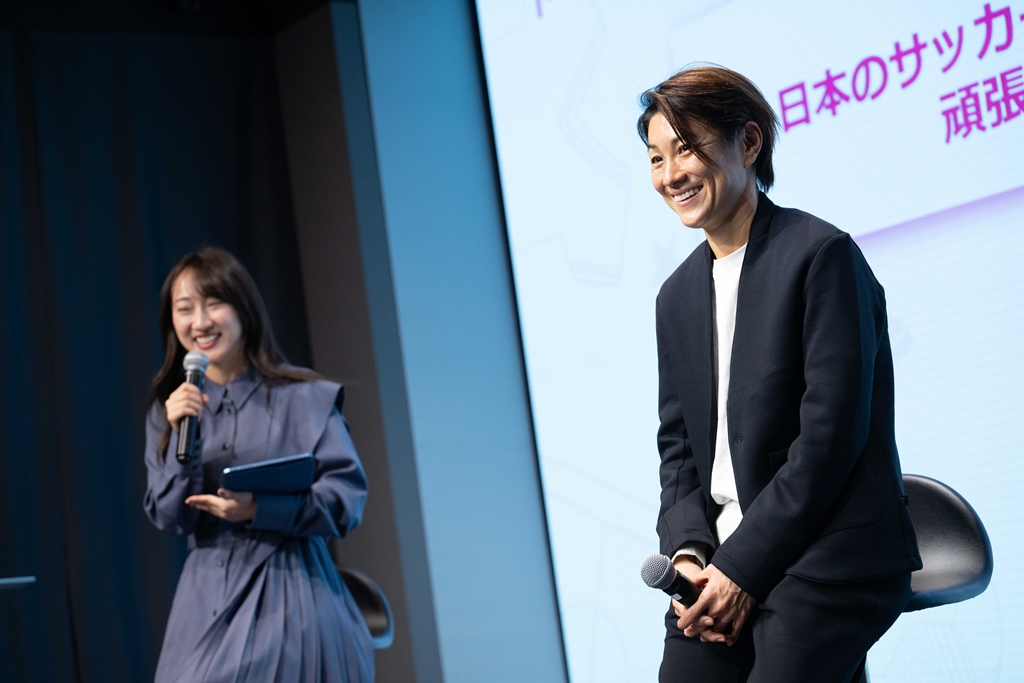 その後、実際に近賀氏も参加し、『女子サッカー人口を増やすには?』をテーマにワークショップを実施。女子競技者が長くサッカーを続けるためのアイデアとして、「サッカーの面白さを老若男女問わず、世界中の人に伝えたい」や「性別や人種関係なく、誰もがサッカーを楽しめる環境を作る」といった意見が飛び交うなか、近賀氏は、「女子サッカーは、最近取り上げられることも少なくなってしまっているため、まずは興味を持ってもらえるような施策をして、サッカーをもっと身近に感じられるものにしていきたいですね」と考えを述べていた。