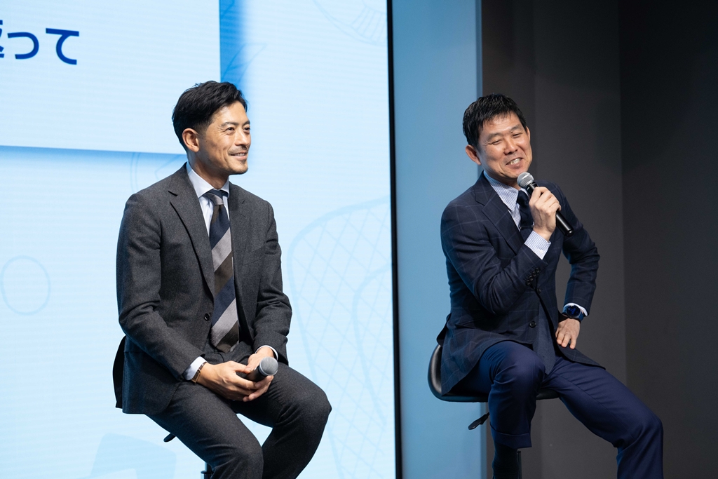第一部では、日本代表の森保一監督と元日本代表の鈴木啓太氏を招き、トークセッションを実施。『日本サッカーを盛り上げるために頑張ってきたこと』を聞かれると、鈴木氏は「日本代表に選出されると、サッカーを知らない人も注目してくれるため、いわゆる“国を背負って戦う”という重圧をものすごく感じました。ただ、それだけ応援してくれる方々が多いので活力になりますし、全力でプレーしていました」と、現役時代を振り返りながら語った。