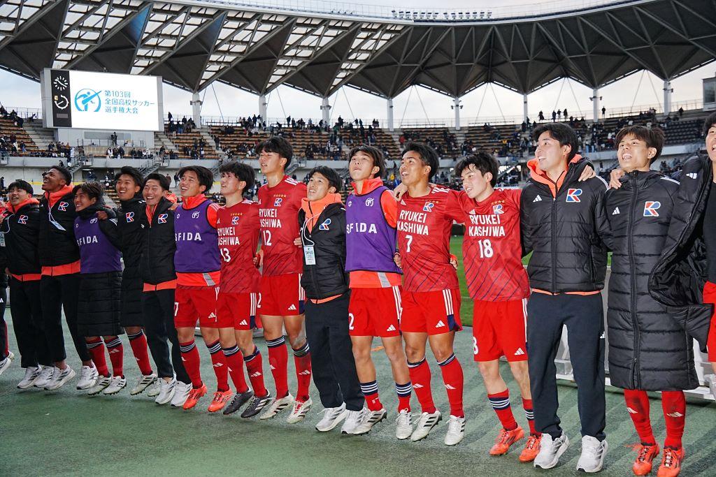 赤のイレブンは試合終了のホイッスルが鳴るまで、集中力を切らさなかった。佐藤を中心に声を出し続けたディフェンス陣は、大津高の攻撃をシャットアウト。試合はそのまま2-1で流経大柏高が熱戦を制し、上田西高(長野県代表)が待つ準々決勝へと駒を進めた。