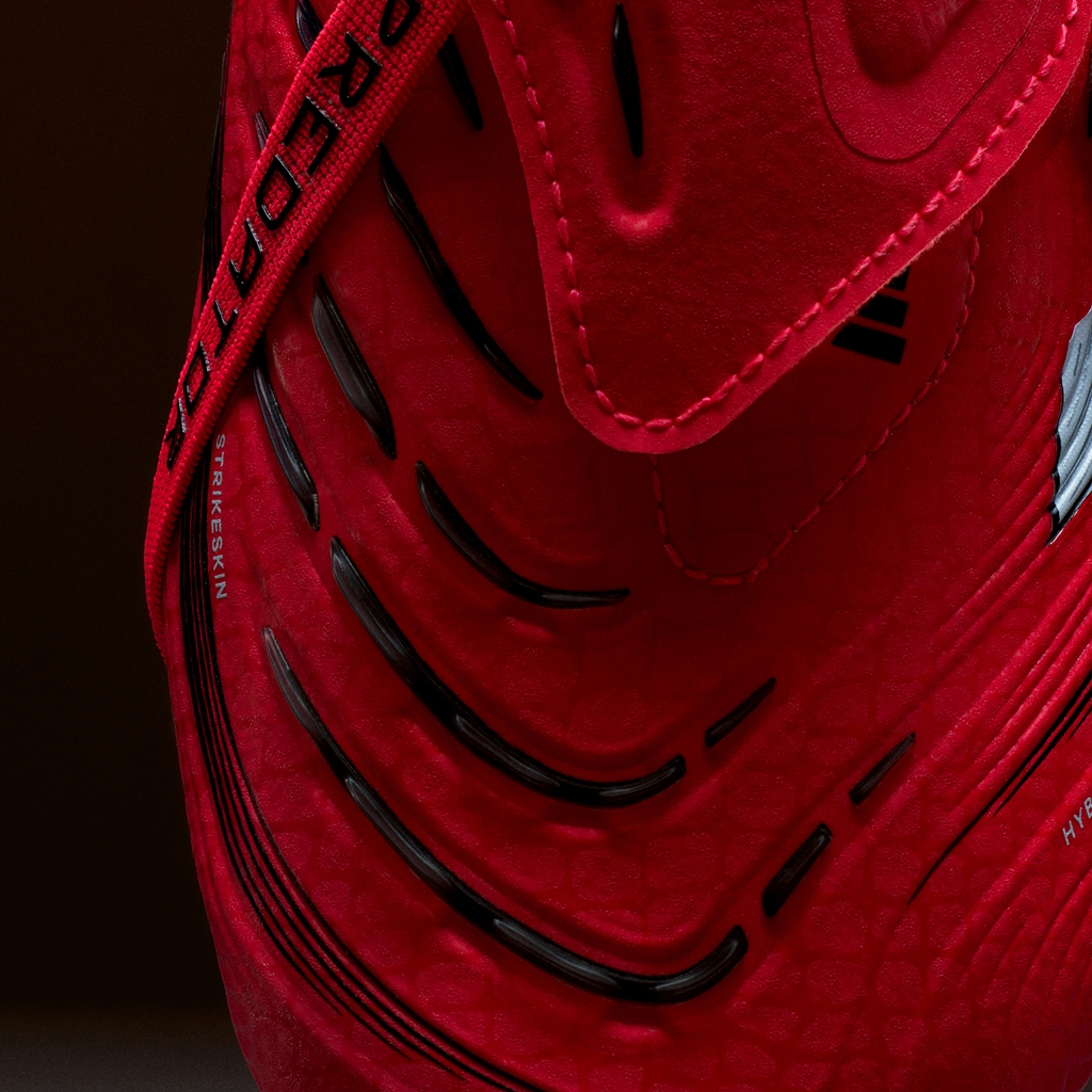 象徴的なプレデターのテクノロジーであるストライクスキンの配置をアップデートし、シュートを打つ際のボールへのグリップ力を高めたことで、正確なシュートを生み出すインパクトをもたらしている。