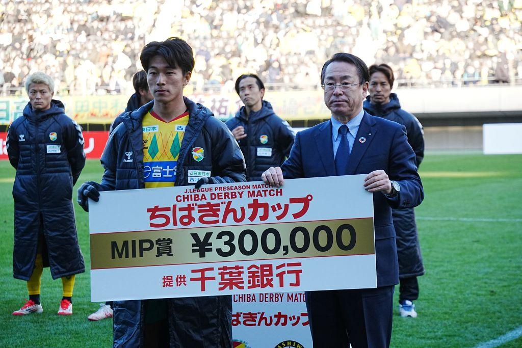 9日に開催された『ちばぎんカップ』ではJ1柏レイソルに0-3で敗れ、3連覇を逃した。後半1分から右サイドで出場した大卒ルーキーMF岩井琢朗はクロスバー直撃のシュートを放つなど存在感を見せ、最も印象に残った選手に贈られるMIP賞を受賞。賞金の30万円については「親に何かをプレゼントしようと思います」と家族想いの22歳だ。