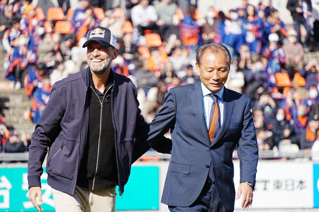 この試合にはレッドブル・グローバルサッカー部門の責任者を務めるユルゲン・クロップ氏が来場。プレミアリーグのリヴァプールでは、日本代表MF南野拓実やMF遠藤航らを指導し、数々のタイトル獲得に貢献してきた世界的名将の姿を一目見ようとリヴァプールのファンも駆けつけた。