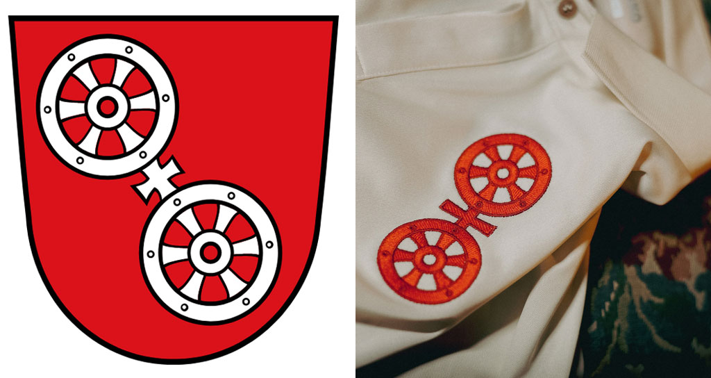 このデザインはマインツの街の紋章と同じで、「十字架でつながれた2つの車輪」を描いたもの。車輪は街の歴史に関係するもので、今回のエンブレムはクラブ創設当時の古い紋章デザインをベースにしている。