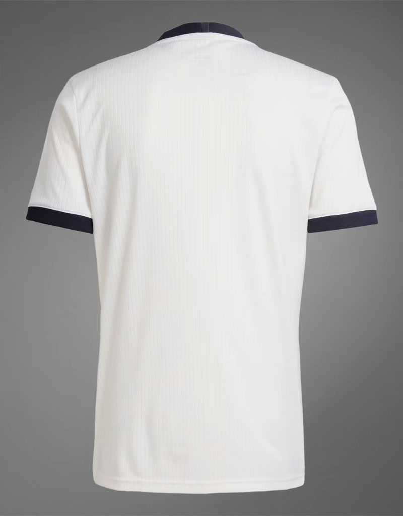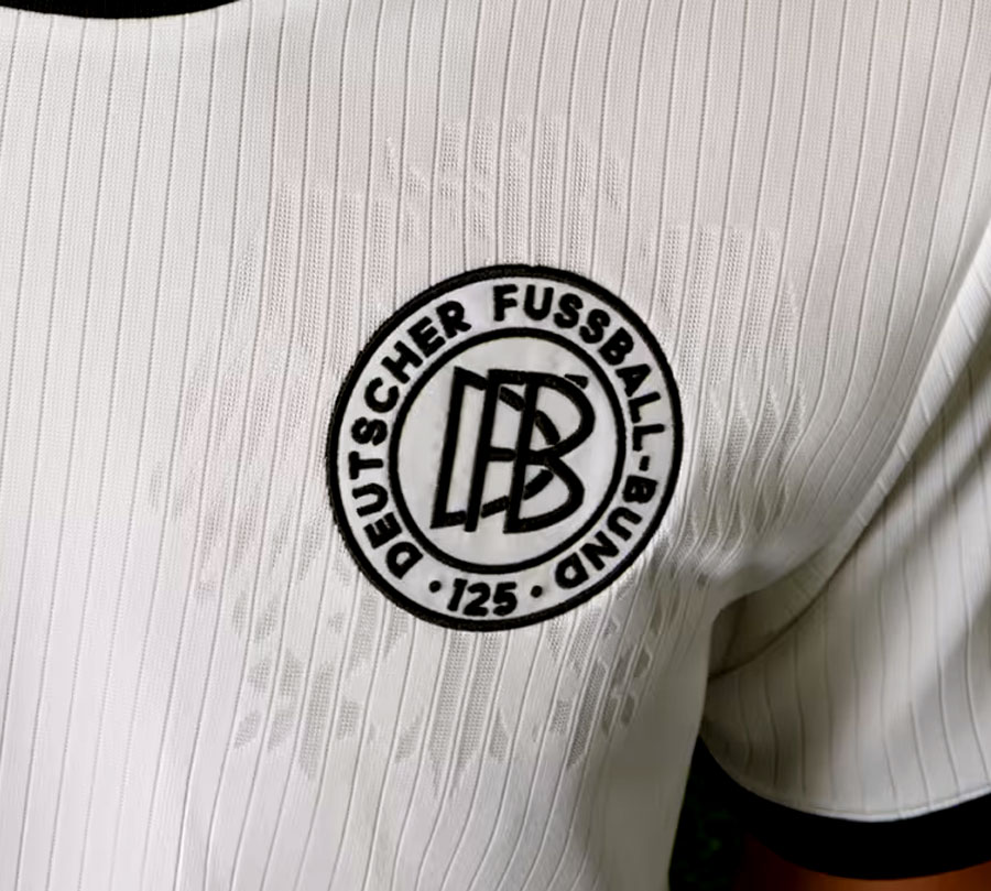 連盟創設125周年を祝う特別ユニフォームは、非常にレトロなデザインが登場。ホワイトを基調に、襟と袖口をブラックで彩るシンプルなスタイルは、チームがまだ「西ドイツ代表」と呼ばれていた1970年代のユニフォームを彷彿とさせる。