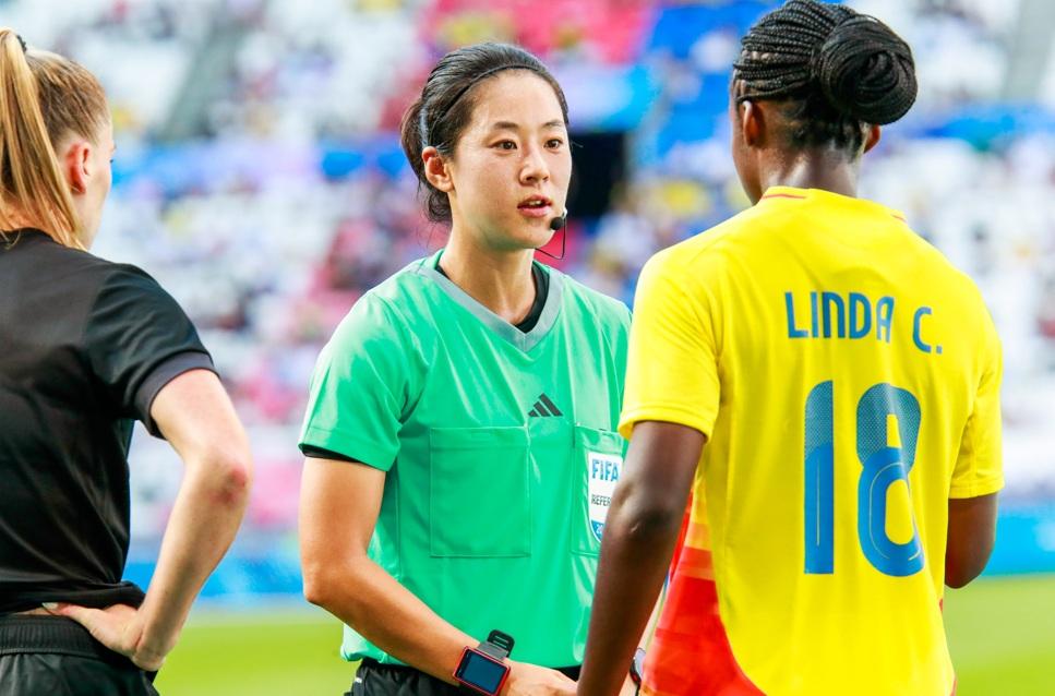 35歳のキム・ユジョン審判は、2018年からFIFAの国際審判員として登録されており、2024年のパリ五輪でも主審を務めた人物。なでしこジャパンの試合も何度も裁いている。