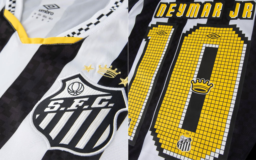 今作のデザインは、サントスとUmbroがともに歩んだ栄光の時代を、90年代的なピクセル柄で表現している。