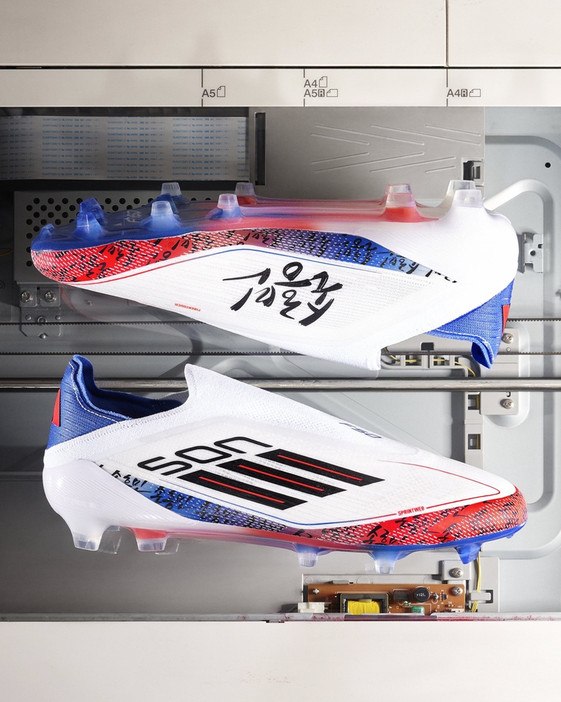 adidasが誇るスピードスパイク『F50』に、韓国の国旗カラーを施し、さらにソン・フンミンの名前を英語と韓国語であしらった限定コレクション。ソンが愛用している通常モデルと同様、レースレス(LL)タイプのELITEモデルだ。