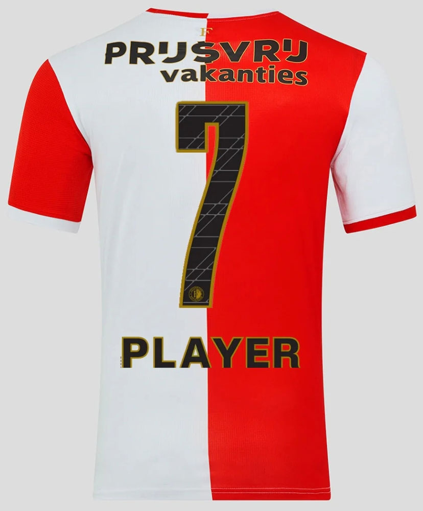 公開されたネーム・ナンバーはブラックとゴールドに。クラブの説明によると、背番号に描く斜めラインはフェイエノールトの新しいビジュアル・アイデンティティだという。