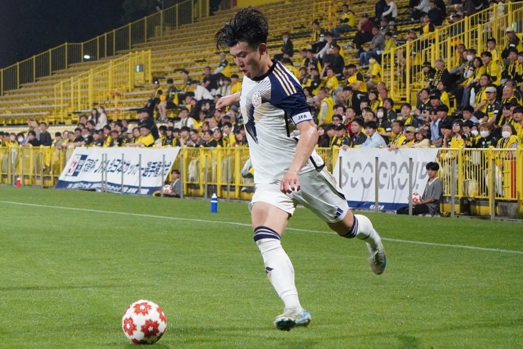 この日、左サイドバックでフル出場したDF山之内佑成主将(4年、柏内定、JFAアカデミー福島U-18)は、延長戦後半2分に値千金の先制点を記録。来季より入団が内定している柏を敗退に追い込む鮮烈な自己紹介となった。
