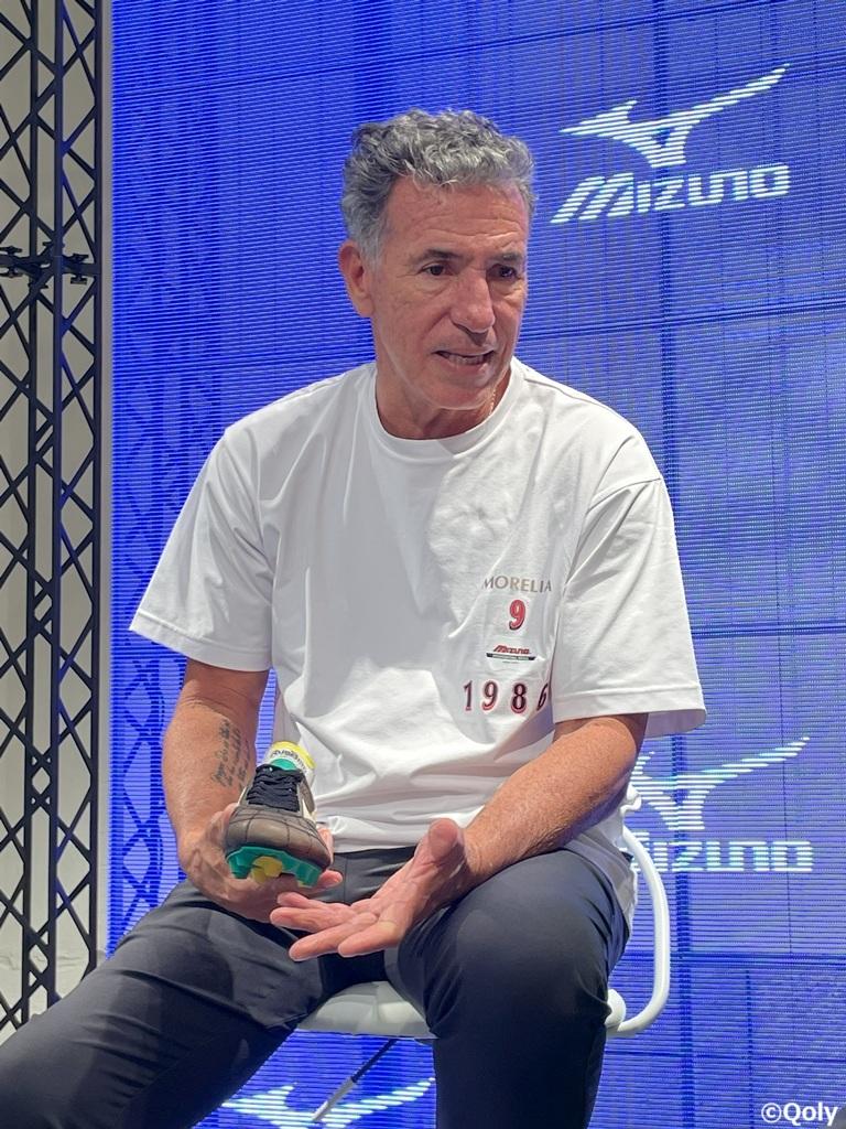 イベントを前にメディアの取材を受け、当時のシューズを手に取りながら、1990年のワールドカップではブラジル代表の多くの選手が着用するなど、「モレリア」が世界に広がっていった理由を教えてくれた。