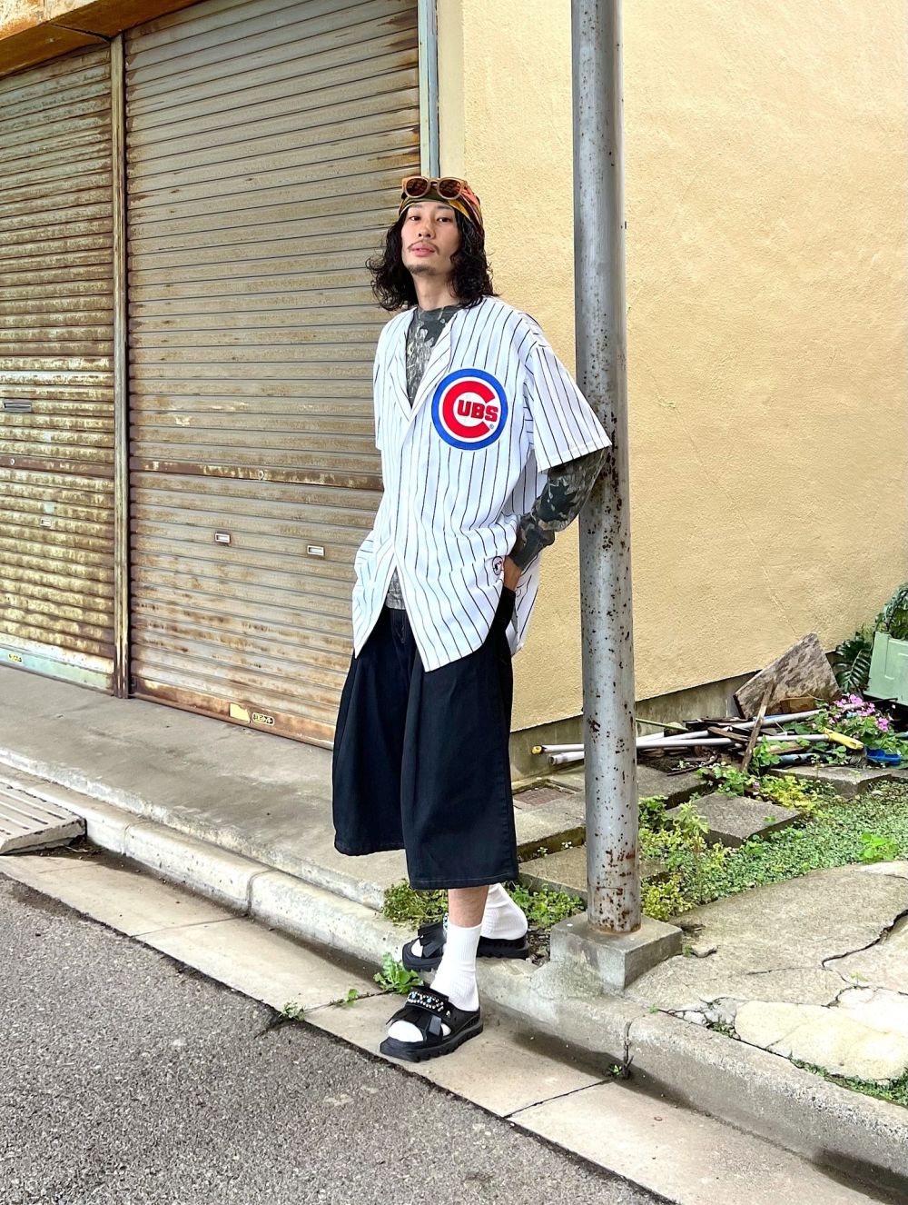 サッカーウェアだけじゃない。MLBのシカゴカブスのユニフォーム。これもこんな風に、あえてデイリーなカジュアルTシャツの上に羽織るだけで、意外性あるメンズのオシャレな着こなしになります。