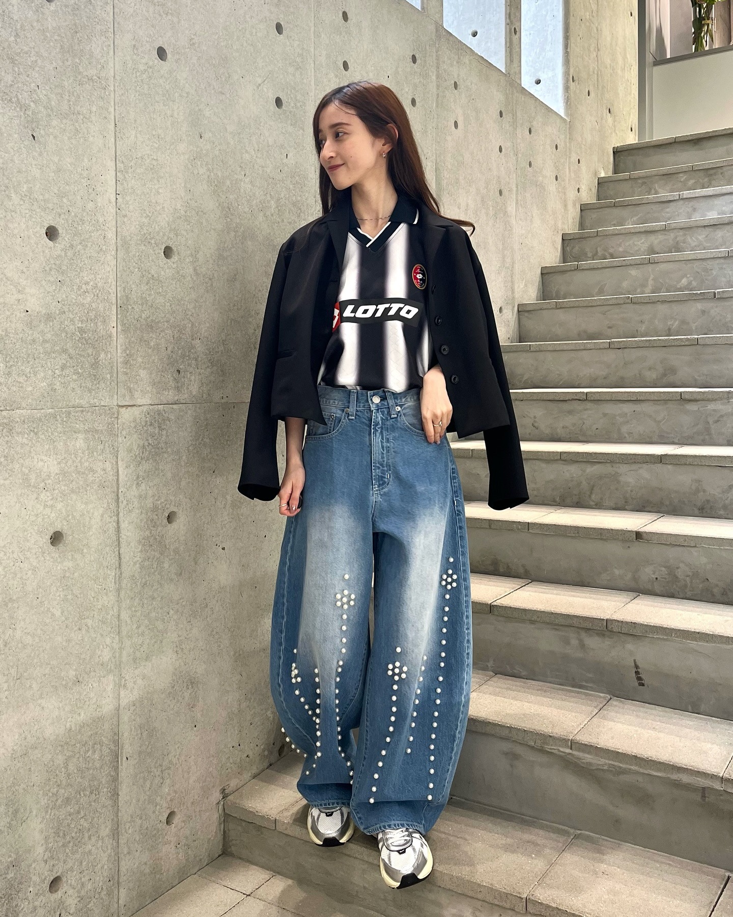 最後は番外編で、ガールズコーデ。こんな風に、普通のオシャレ女子が、ユニフォームをアクセントにしたコーディネートを楽しんでいて、いまの流行スタイル。これはスポーツ好き男性も、負けていられない⁉