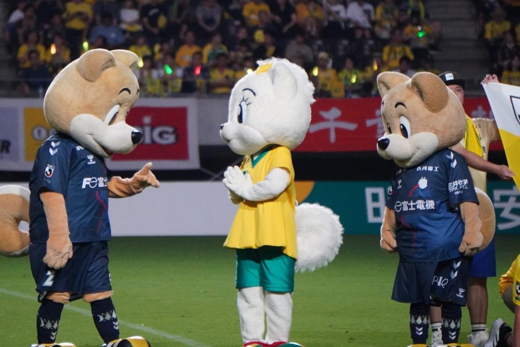 ここ最近は、ホームのフクダ電子アリーナへ遊びに来てくれていなかったが、この日は同クラブの先輩マスコットであるジェフィ、ユニティとともにスタジアムを盛り上げた。