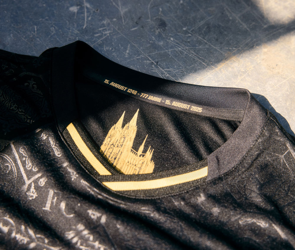今作はケルンのクラブ創立77周年と、ケルンの象徴「ケルン大聖堂」の基礎石設置777周年を祝う特別なユニフォームで、大聖堂側が製作に加わった特別な一着だ。