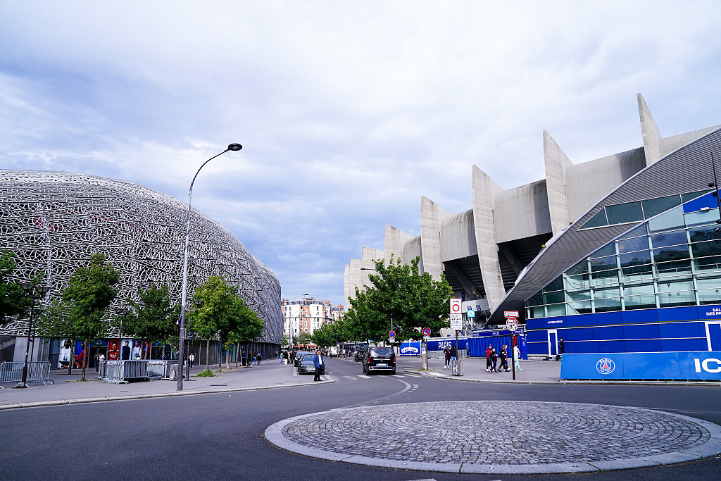 パリFCの新たなホーム、スタッド・ジャン=ブーアン(向かって左)は、PSGのホームであるパルク・デ・プランス(向かって右)と、道一本を隔てて隣接。「世界一のご近所ダービー」として話題となっている。