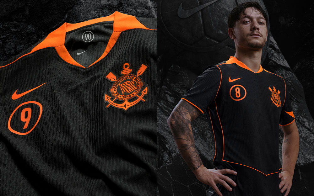 ブラックはコリンチャンスお馴染みのキットカラーで、オレンジも定期的に使われる色。だが、ブラック基調にオレンジという配色は、2006年のサードモデル以来となる。
