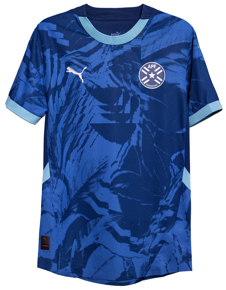 かつてパラグアイのアウェイはホワイトが定番だったが、最近ではブルーも度々採用されている。また、基調色に合わせた色のエンブレムは今回が初となる。