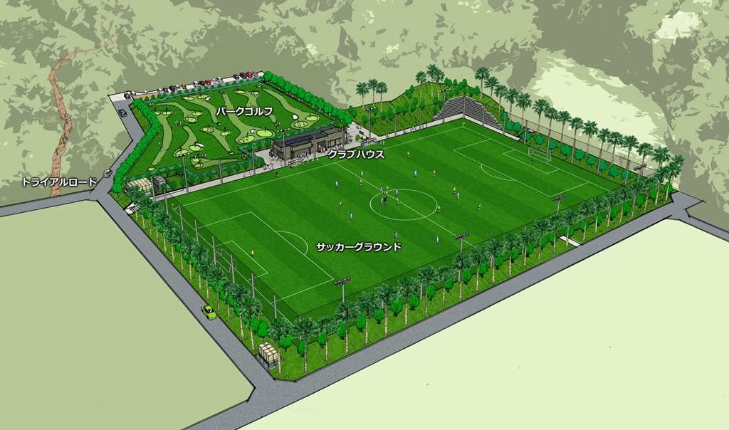 湘南ベルマーレU-18(高校生年代)を中心としたアカデミーの練習拠点となる天然芝のサッカーグラウンド1面、パークゴルフ、クラブハウス、トライアルロードを兼ね備えた施設として、湘南ベルマーレの多岐に渡る活動を実現する場所になるという(画像:湘南ベルマーレ)。