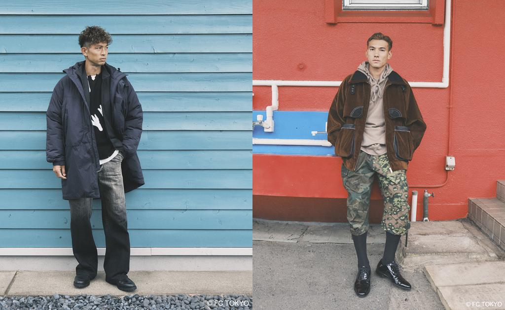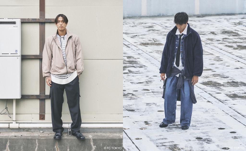これに先立ち、本コレクションのアイテムを着用したFC東京の4選手(森重真⼈、室屋成、佐藤恵允、岡哲平)によるビジュアルがSTUDIOUSによって公開された。