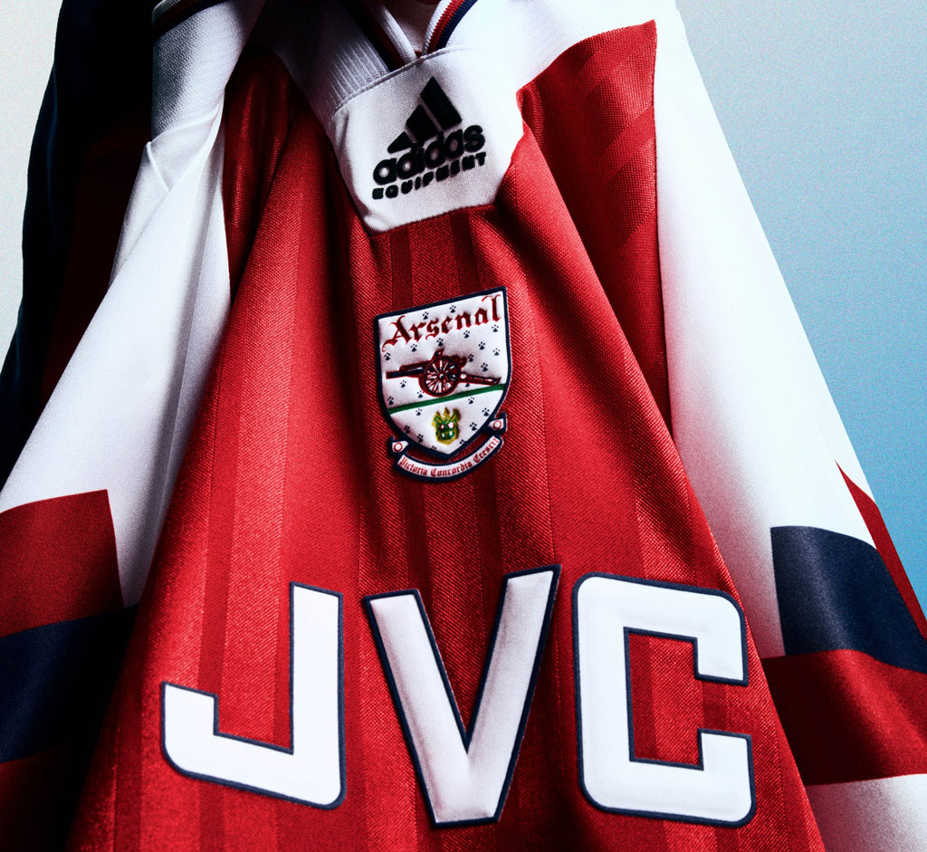 当時のアーセナルのエースだったイアン・ライトが着ているのが、今作のオリジナルである1992-94モデル。