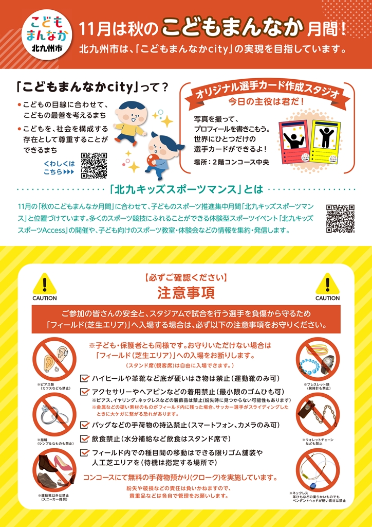 そんなミクスタで、今週末の11月2日(日)、子どもたちが9種類のスポーツを一度に体験できるイベントが北九州市により開催される。